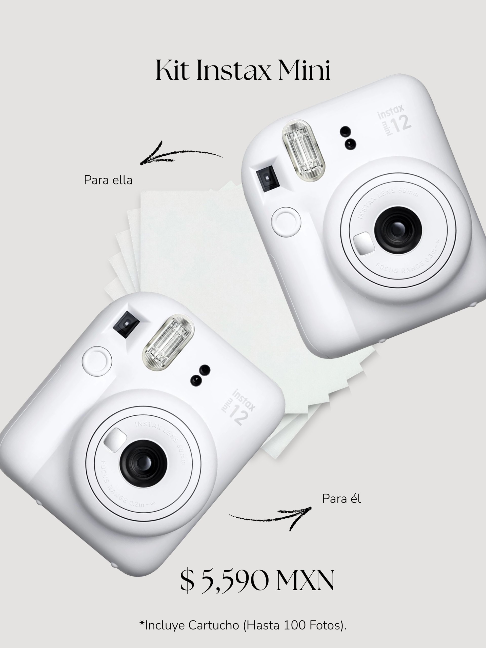 $5,590: 2 Cámaras + Cartuchos de Fotos.